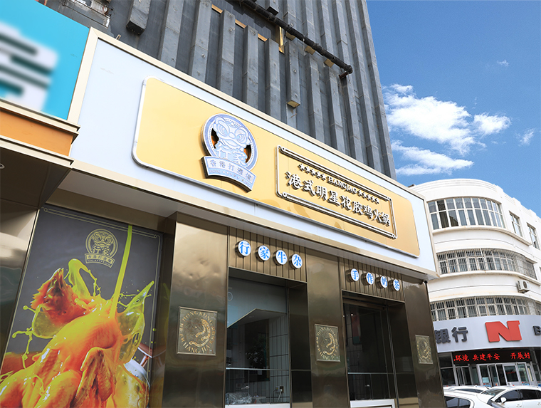行家花膠雞港式打邊爐餐廳在顏色設計上結合品牌色,大面積使用不銹鋼金色,藍綠色,暗紅色,將餐廳打造成主題風格截然不同的港式餐廳,同時融入具有地域風情的港式風味,在文化元素上植入恭喜發財,順、發、喜等傳統香港吉祥話語元素,傳統與現代的元素融合在餐飲空間中,突破了人們對傳統港式餐廳的認知,重新定義新派港式打邊爐餐廳的基調。