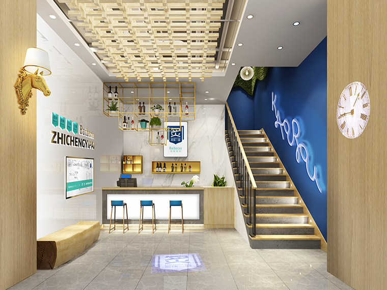 海口首家炙子烤肉空間裝飾裝修設計、烤肉店軟裝設計、烤肉店品牌形象植入、門店平面布局設計、烤肉店門店燈光設計。