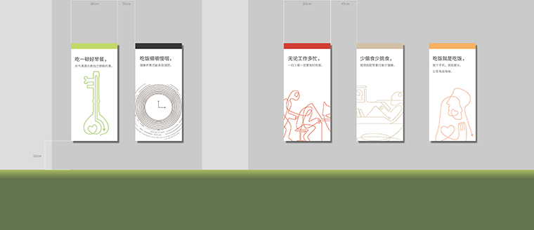 品深餐飲設(shè)計通過對匯鈺二食堂的調(diào)查研究,認(rèn)為在簡餐的空間中植入比較多的飲食文化,就如同媽媽的叮嚀一樣,不斷在你耳邊強(qiáng)調(diào)要按時吃飯、不要偏食挑食,要注意休息,少玩手機(jī),放松心情等。