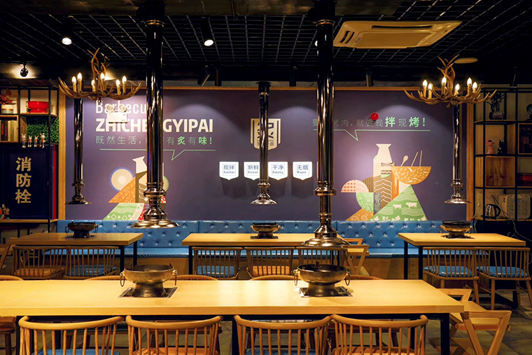 炙成一派作為海口首家現(xiàn)拌烤肉,具有明顯的市場先發(fā)優(yōu)勢,在空間中通過氛圍體驗,品牌訴求,在消費者心目中植入現(xiàn)拌烤肉就是炙成一派,將品牌等同于品類。通過空間的視覺體驗,燈光感受,食物的味道,家具軟裝的觸感體驗,讓顧客能放松心情,享受美食,有情懷,有情調(diào),有趣味。顧客置身其中,心靈宣泄,釋放壓力,最終產(chǎn)生品牌的粘性和較高的復購率。