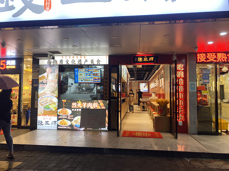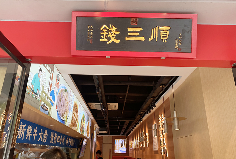 2、門店入門口上方懸掛錢三順匾額,匾額是中國(guó)文化中非常鮮明的符號(hào)。懸掛匾額讓人聯(lián)系歷史悠久,品牌是老字號(hào),是傳承多年的。