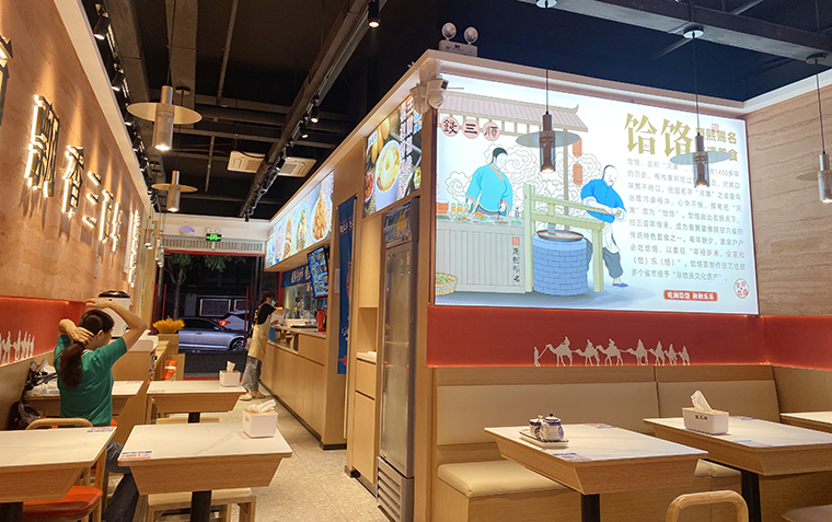 4、品深設(shè)計(jì)認(rèn)為,面館本質(zhì)上與簡(jiǎn)餐是一樣的,顧客就是在簡(jiǎn)餐和面館之間切換口味而已,所以我們?cè)陂T店內(nèi)部沒有過多展示品牌的文化。更多是推廣品牌、推廣產(chǎn)品,圖文并茂直接講清楚,饸饹面是一種什么面食?錢三順是怎么來(lái)的?錢三順的核心賣點(diǎn)是什么?我們主推哪些產(chǎn)品等等。